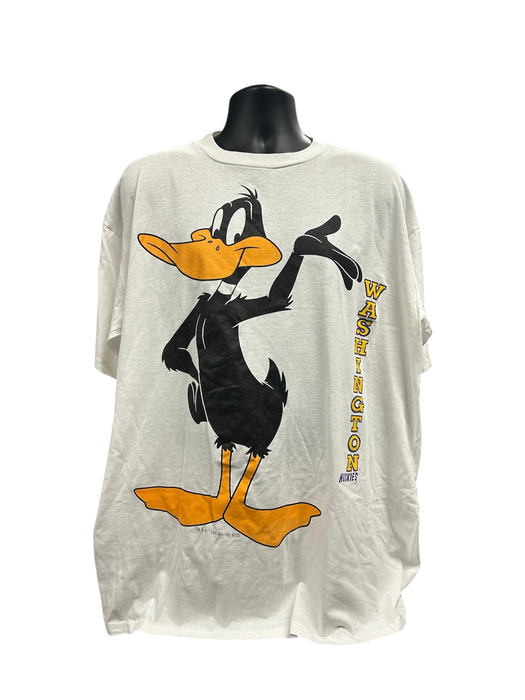 Shop › 1994 Daffy Duck Huskies Tee OSFA (XXL) 1994 Daffy Duck Huskies Tee OSFA (XXL) Sale Price: $95.00 Original Price: $145.00 Add To Cart Added!
